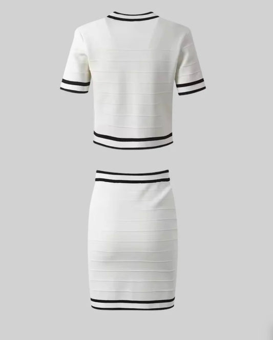 Zweiteiliges Set mit schwarzen Akzenten und goldenen Knöpfen