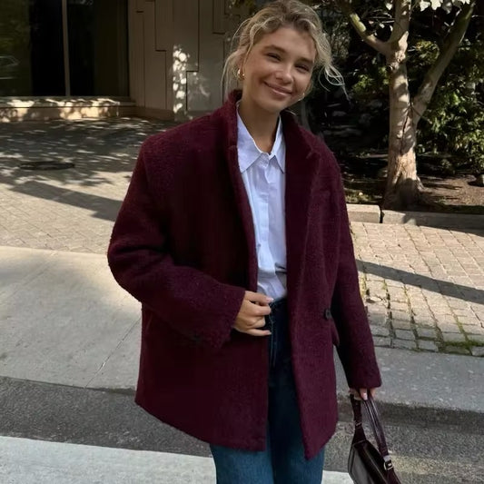 Bordeauxfarbener Blazer mit Doppelknopfleiste