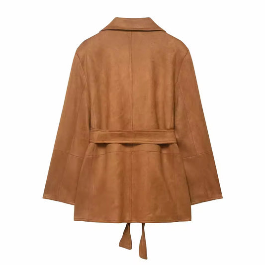 Wildleder-Optik Jacke mit Gürtel