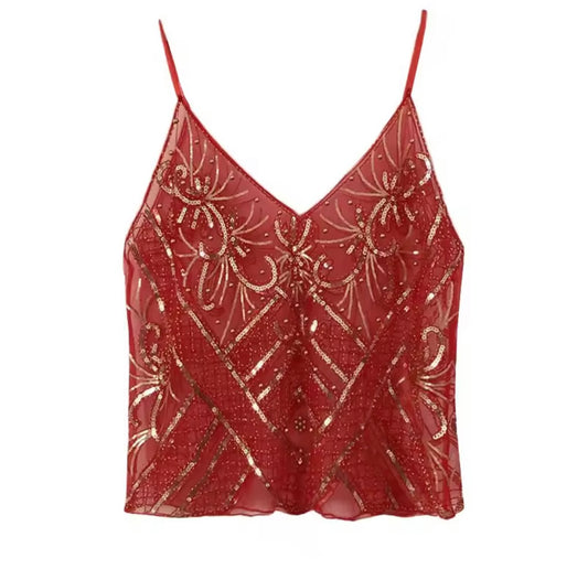 Pailletten-Spitzen-Camisoletop