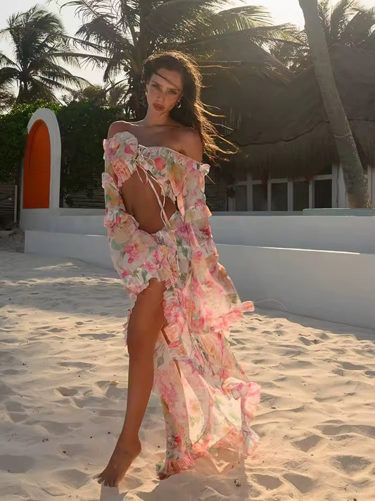 Tropical Bloom Bandeau Maxikleid