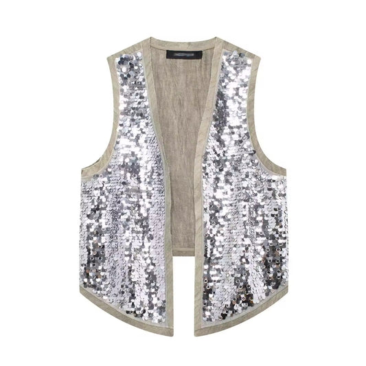 Glamorous Sequin Set – Silver Vest & Mini Skirt