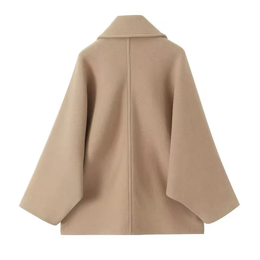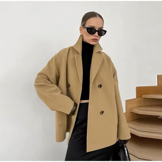 Classic camel coat with double button placket