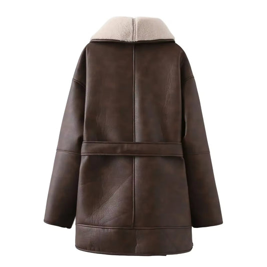 winter coat with faux fur lining and belt