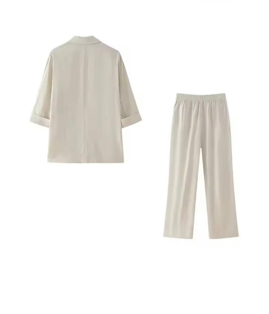Women's Trendy sleeveless set with buckle top and wide pleated pants in beige