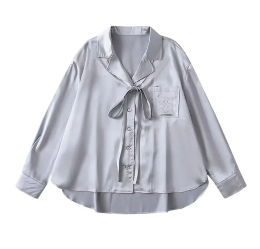 blouse with bow collar and breast pocket