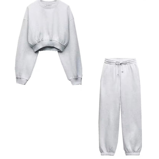 Two-piece set of crop sweatshirt and sweatpants