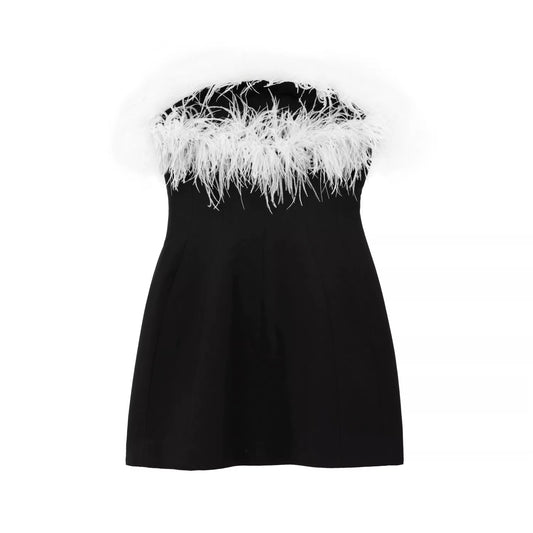 Black cocktail dress with feather trim