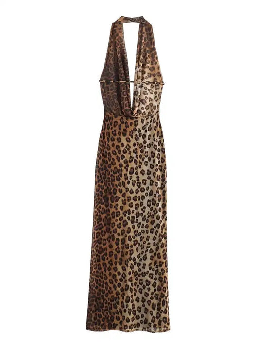 Elegant champagne satin halter neck evening dress with flower appliqué