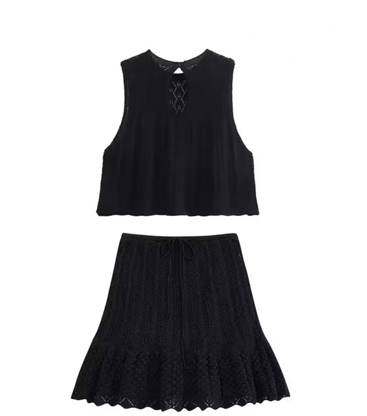 Zweiteiliges Strick-Set – Top & Rock in Häkeloptik