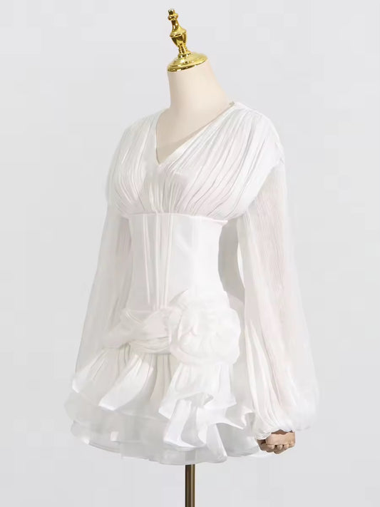 White Swan – Plissiertes Chiffonkleid mit Volants