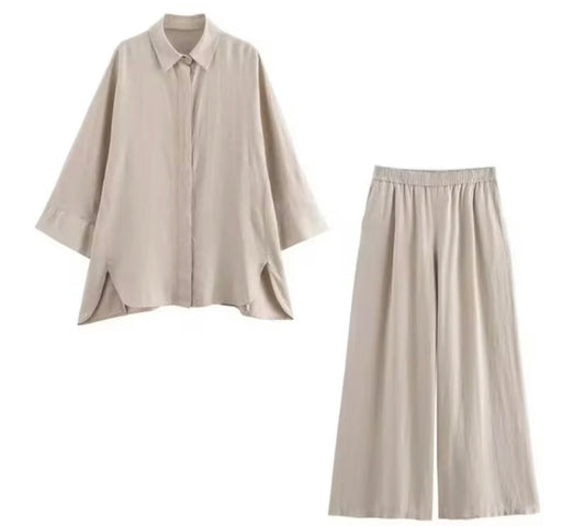 Lime Mist – Zweiteiliges Set aus Bluse & weiter Hose