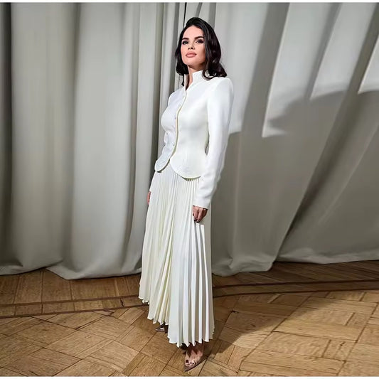 Zweiteiliges Set aus Blazer & Plisseerock