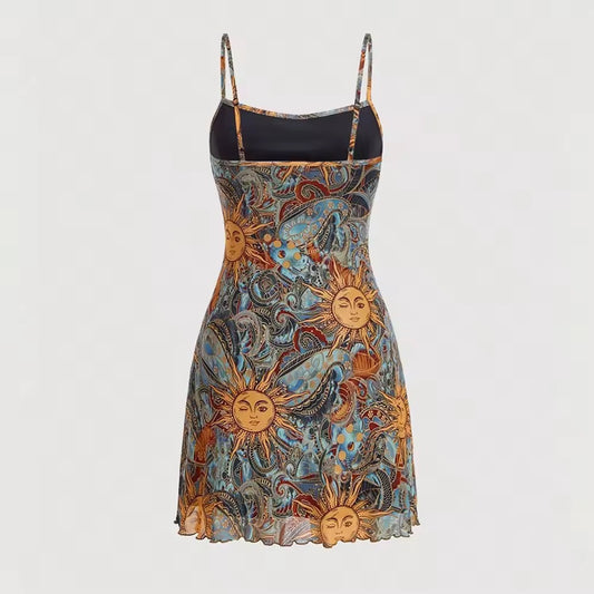 Boho Minikleid mit Spaghettiträgern