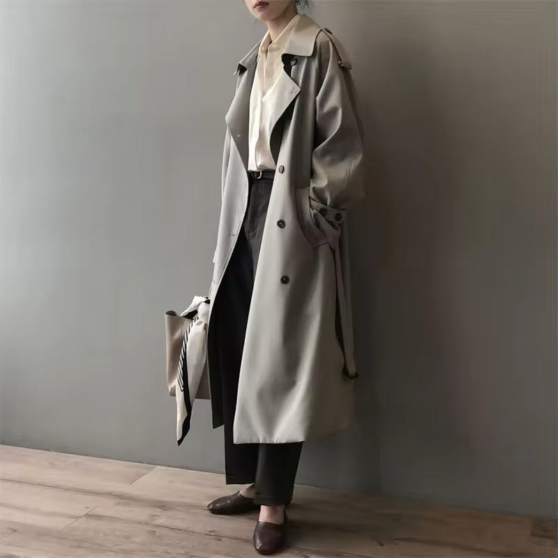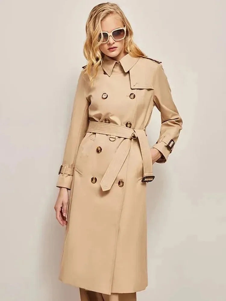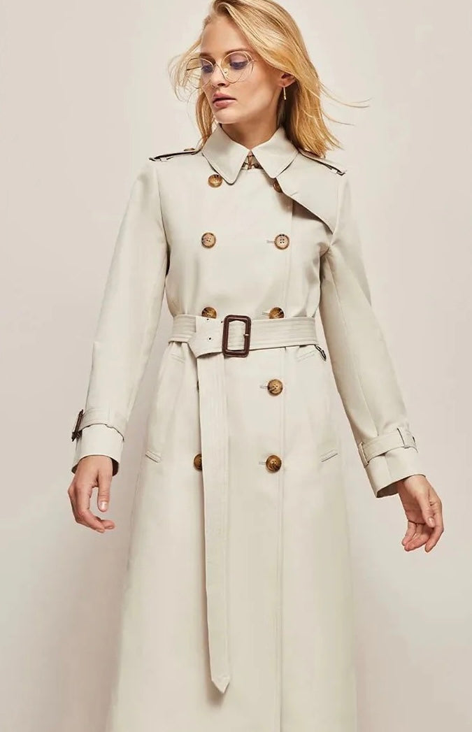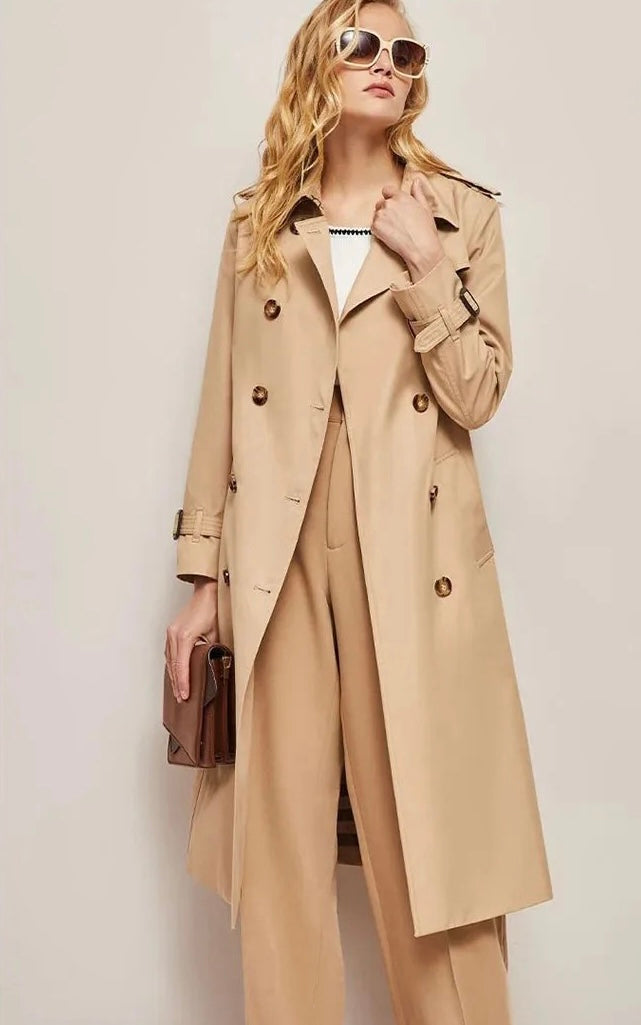This elegant beige trench coat is the perfect piece for the modern woman. Made from high-quality material, it not only offers stylish looks, but also comfort and durability. The coat features a classic double-breasted closure, a belt to accentuate the waist and epaulettes that add a sophisticated touch to the look. Ideal for transitioning between seasons, this trench coat complements any outfit - from formal to casual occasions. Stay stylish and warm in this timeless classic.