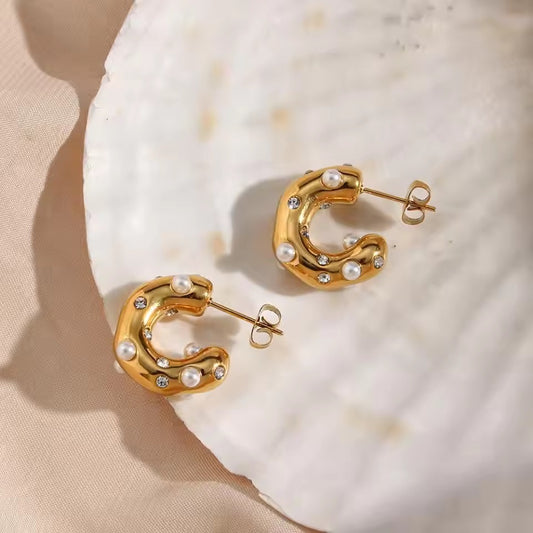 Luxuriöse vergoldete Creolen mit Perlen & Zirkonia
