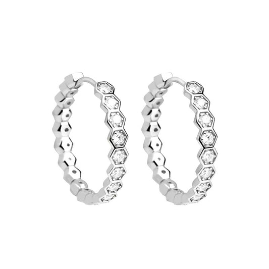 Boucles d'oreilles créoles plaquées or avec zircones en forme de nid d'abeille