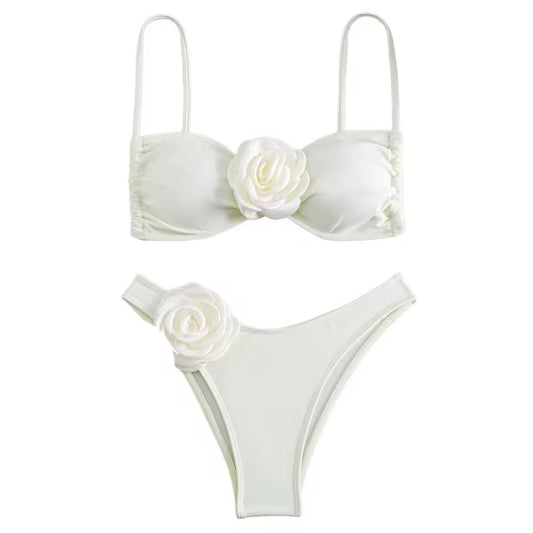 Schwarzer Bikini mit 3D-Rosen-Applikation