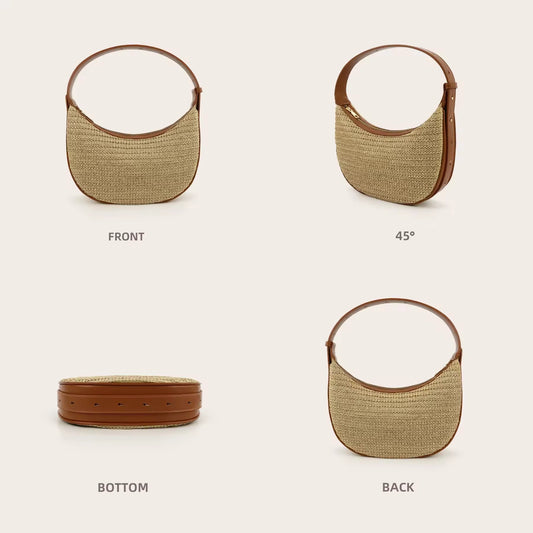 Geflochtene Halbmond-Schultertasche mit Lederdetails
