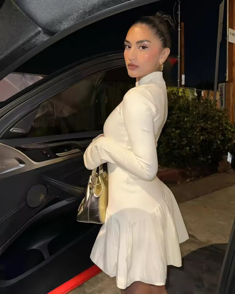 Dieses edle cremefarbene Strickkleid vereint feminine Eleganz mit einem modernen Touch. Das figurbetonte Oberteil betont die Silhouette, während der leicht ausgestellte Rockteil einen verspielten und fließenden Look schafft. Die ausgestellten Ärmel sorgen für einen besonderen Akzent und verleihen dem Kleid einen Hauch von Retro-Chic.